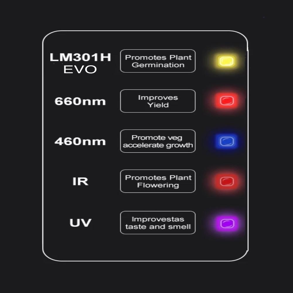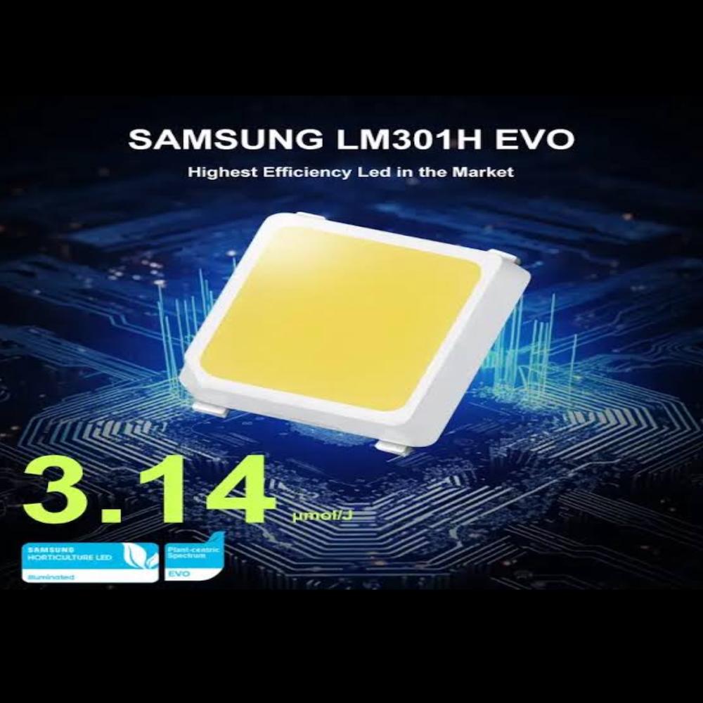 Samsung LM301H EVO Çipler: 3.14 µmol/j verimlilik değeri ile dünyanın en gelişmiş led diyot teknolojisi. Minimum ısınma, maksimum fotosentez.
