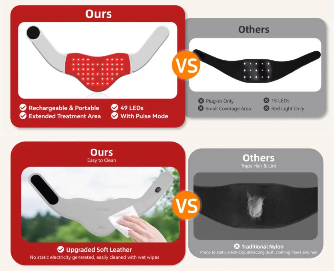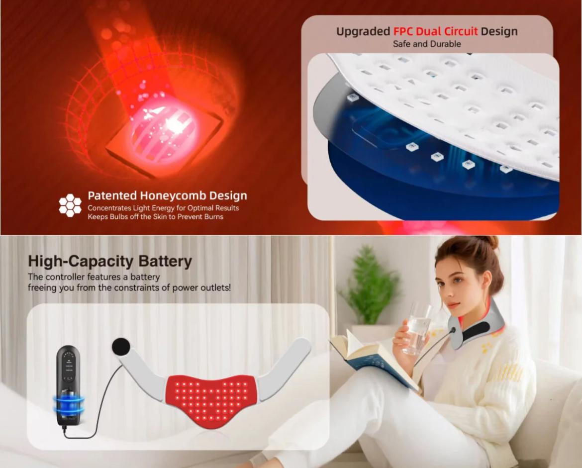 Boyun, ense ve trapez kaslarındaki ağrıları hafifletmek için geliştirilmiş bu LED ışık terapi cihazı; 660nm kırmızı ışık ve 850nm görünmez kızılötesi ışık dalga boylarıyla çalışır.; Gelişmiş 3’ü 1 arada LED teknolojisi ve Pulse modları (10Hz & 40Hz) ile cilt altına daha derin etki eder, dolaşımı destekler, gergin kasları rahatlatır.; ✅ 49 Adet 660nm Kırmızı LED – Cilt yüzeyine etki ederek kan dolaşımını destekler ✅ 98 Adet 850nm Kızılötesi LED – Daha derin kas dokularına ulaşarak ağrıyı hedefler ✅ Neck Strain / Cervical Pain / Trapez Kas Rahatlatma için etkili ✅ Doğal, ilaçsız ve yan etkisiz çözüm ✅ Hafif ve ergonomik tasarımı ile evde, işte, kitap okurken bile kullanıma uygun ✅ Velcro bantlı yapısıyla farklı boyun ebatlarına kolayca uyum sağlar ✅ Günlük kullanıma uygun – sadece 15-20 dakika kullanım yeterli 🎛️ Akıllı Kontrol Paneli Özellikleri: • 6 Farklı Zamanlama Seçeneği – 5, 10, 15, 20, 25 ve 30 dakika • 3 Işık Modu – Kırmızı / Kızılötesi / Kombine • 3 Güç Seviyesi – Düşük, Orta, Yüksek 💡 Kimler için uygun? • Masa başı çalışanlar • Uzun süre telefon / bilgisayar kullananlar • sonrası destek amaçlı kullanım • Spor sonrası kas yorgunluğu yaşayanlar